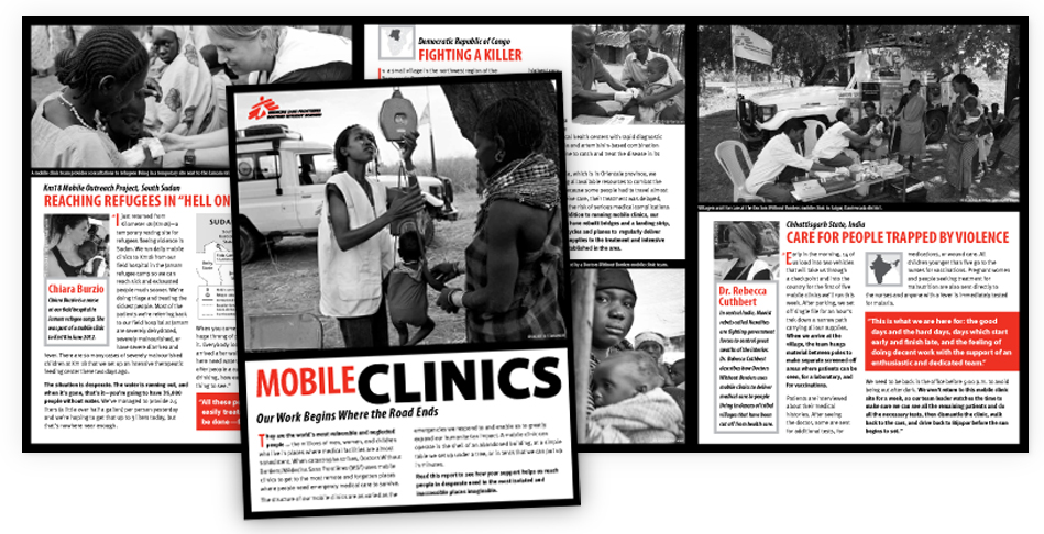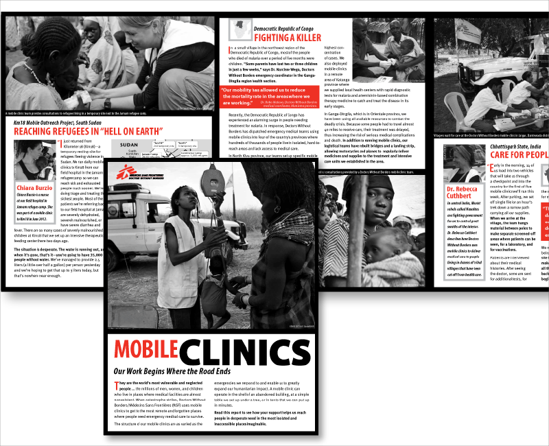 The work Cynthia has done for Doctors Without Borders/Médecins Sans Frontières (MSF) is just fabulous, and I just love how inventive aand creative she is… and how many design options she always gives us! Ms. Spence is such an expert at creating work that is very on-brand for MSF.